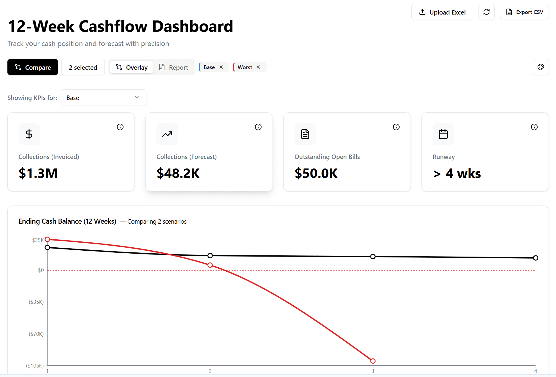 Real-time cash flow models that anticipate shifts, track burn, and project liquidity so you always know what’s next.